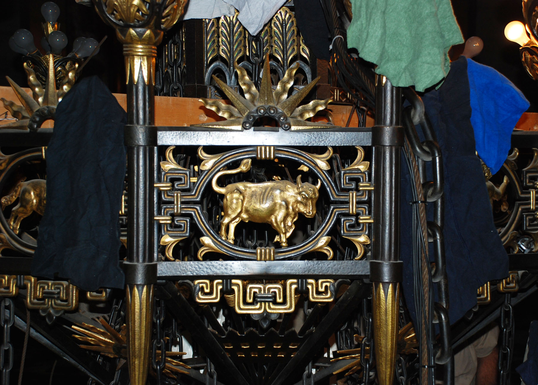 Taurus the Bull one of 12 zodiac signs around the outside of the rotunda chandelier.